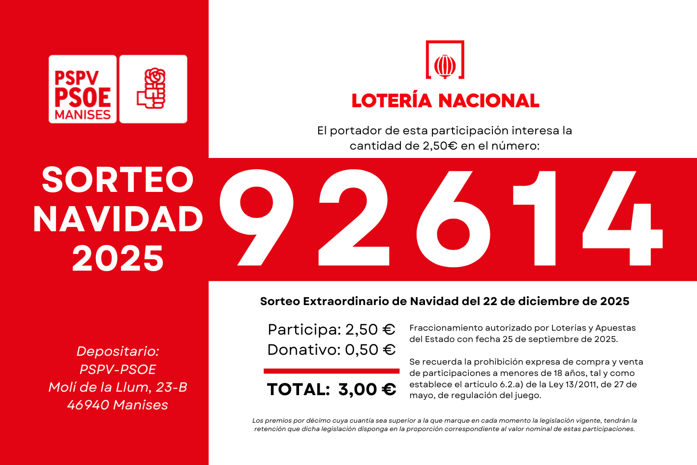 No te quedes sin la papeleta del PSPV-PSOE de Manises Puedes adquirirla el martes y...