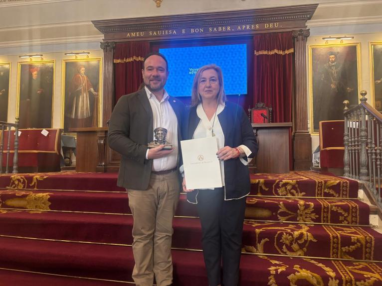 L’alcalde de Manises, Javier Mansilla, ha recollit el distintiu que li ha entregat la rectora magnífica de la Universitat de València, Mª Vicenta Mestre, a l’acte en què també s’ha reconegut el treball de diverses institucions culturals i entitats, celebrat aquest dilluns al Paranimf de la UV, actual Centre Cultural La Nau.